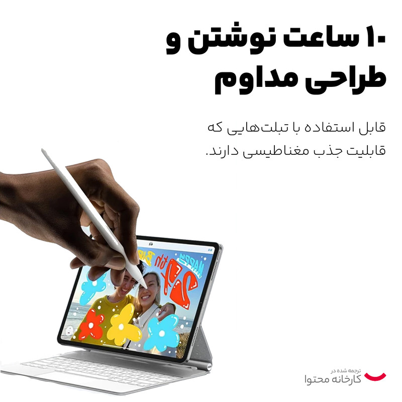 به همین دلیل، این قلم ویژگی «سازگاری جهانی» دارد و با اکثر دستگاههای لمسی خازنی، از جمله گوشیها و تبلتهای اندروید، آیفون / آیپد و دستگاههای ویندوزی، به خوبی کار میکند.